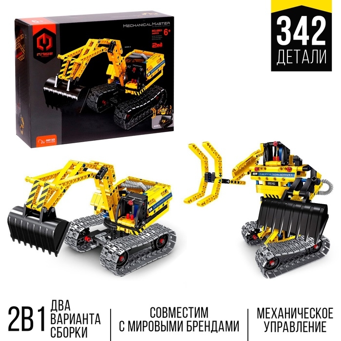 Конструктор техно «Экскаватор», 2 варианта сборки, 342 детали