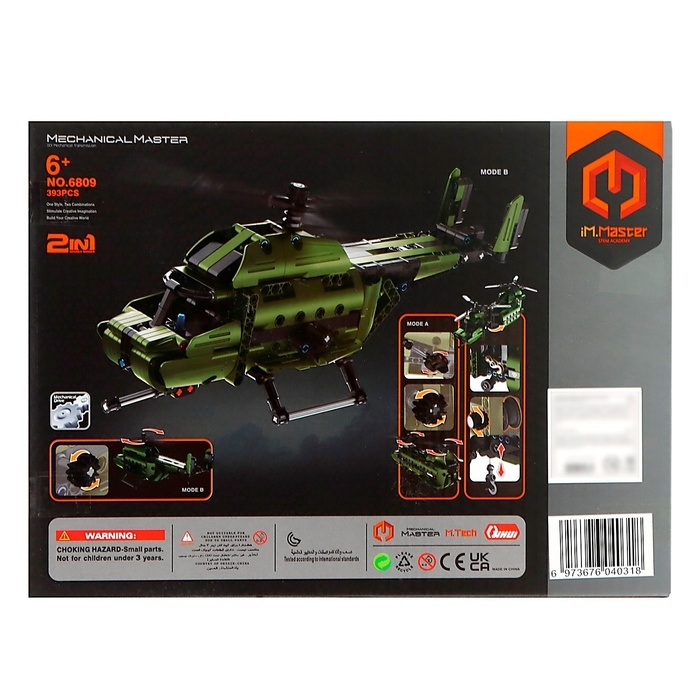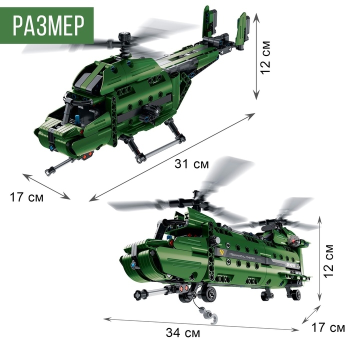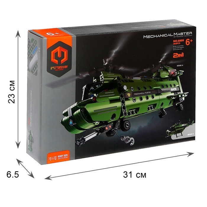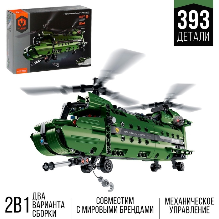 Конструктор техно «Военный вертолёт», 2 варианта сборки, 393 детали