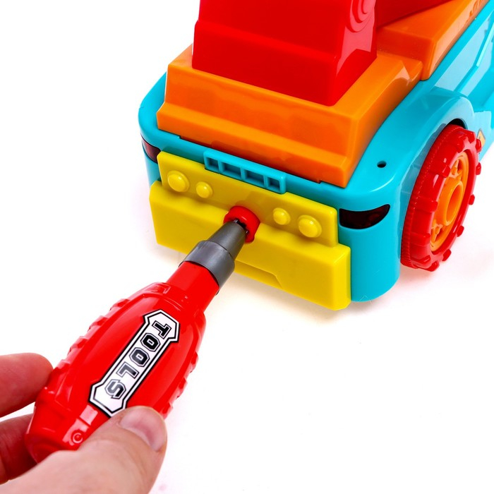 Ребёнок с помощью отверток, имеющихся в наборе, сможет сам собрать игрушку.