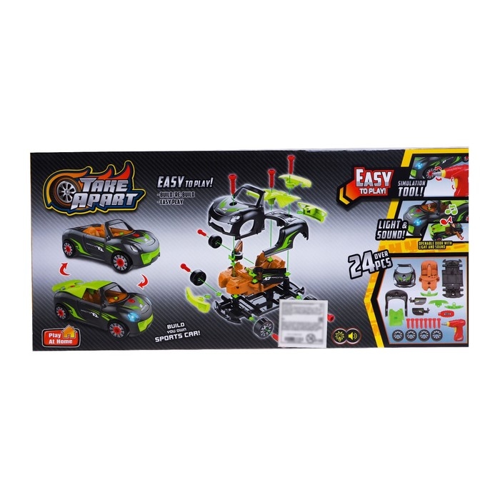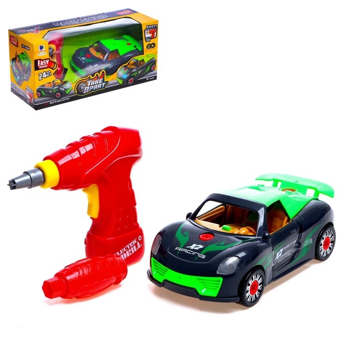 Конструктор винтовой «Спорткар», с электрическим шуруповёртом, свет и звук, 24 детали