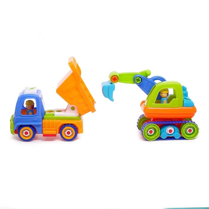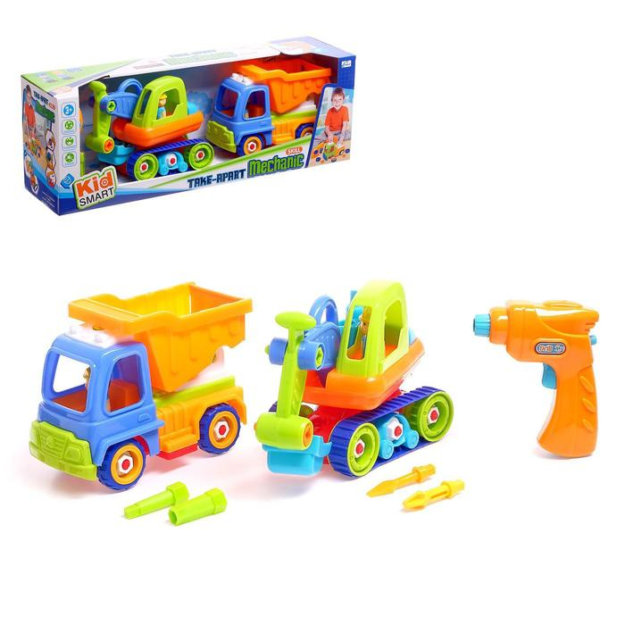 Конструктор винтовой «Строительный транспорт», набор 2 шт, с электрическим шуруповертом