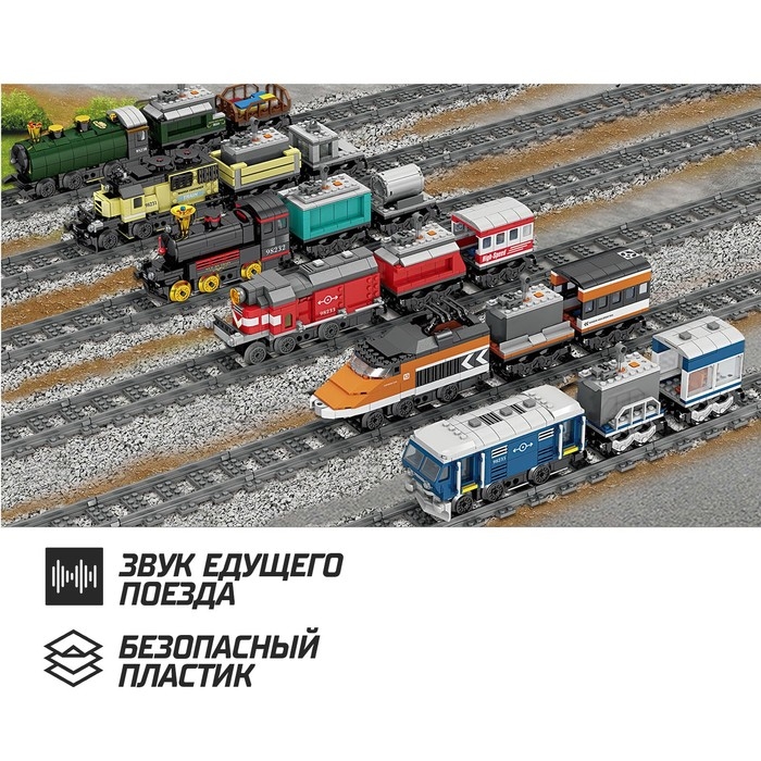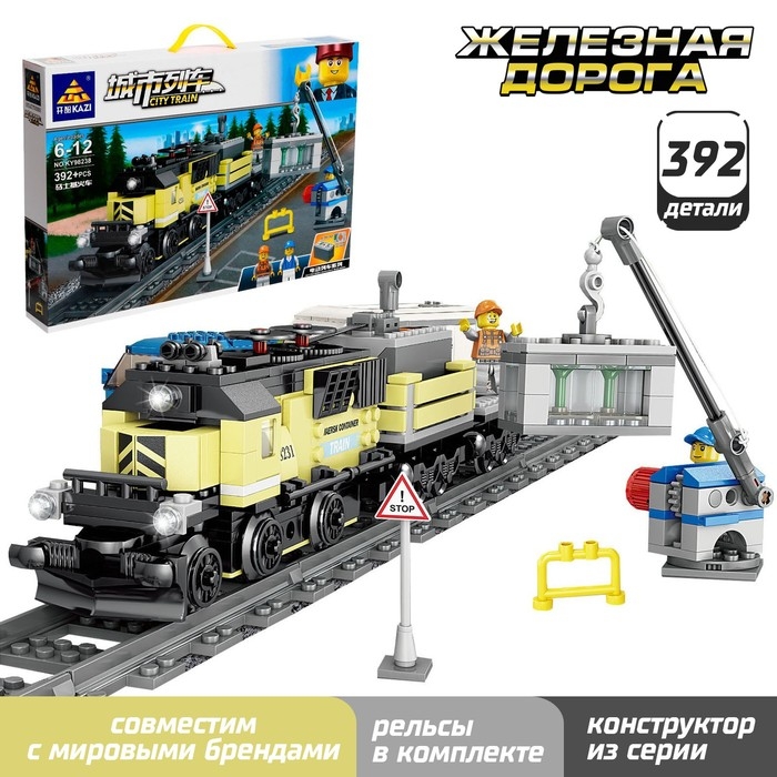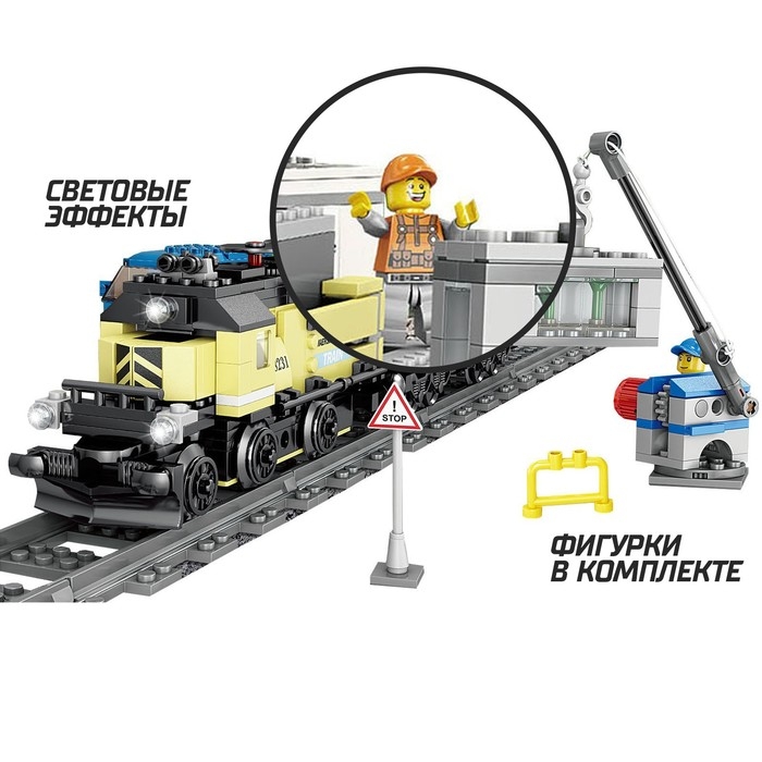 Конструктор ЖД «Грузовой тепловоз», работает от батареек, 392 детали