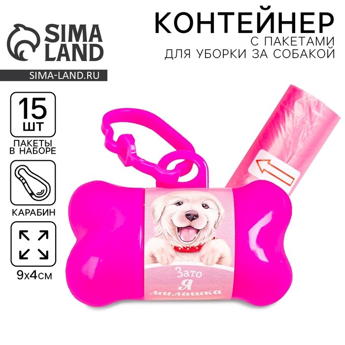 Контейнер с пакетами для уборки за собаками «Я милашка» (рулон 15 шт)