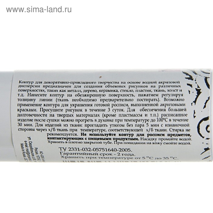 Не используйте контуры для росписи предметов, контактирующих с пищевыми продуктами.