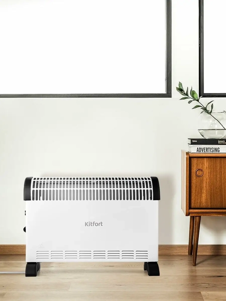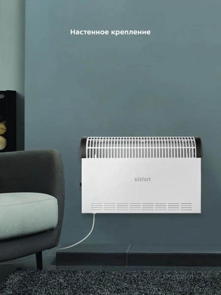 Обогреватель Kitfort KT-2703 предназначен для обогрева воздуха в квартирах, загородных домах, офисах. Прибор имеет три уровня мощности и механический термостат для регулировки уровня нагрева. KT-2703 относится к конвекторному типу обогревателей, так что его корпус не нагревается слишком сильно в процессе работы. Это особенно важно для семей с маленькими детьми. Устройство предназначено для напольного и настенного размещения. В комплекте идут ножки и крепления на стену. На корпусе обогревателя расположены ручки для удобного перемещения прибора. Обогреватель KT-2703 имеет простое управление с помощью кнопок и ручки термостата. Обогреватель оснащен защитой от перегрева. Прибор подходит для обогрева помещений до 20 кв. м. При небольшой разнице температур снаружи и внутри, высокой теплоизоляции помещения и низкой вентиляции, обслуживаемая площадь будет больше.