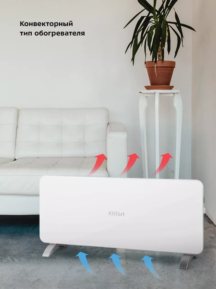 Обогреватель КТ-2707 относится к конвекторному типу обогревателей. Корпус прибора не нагревается слишком сильно в процессе работы, поэтому вы не обожжетесь, если случайно дотронетесь до него.
