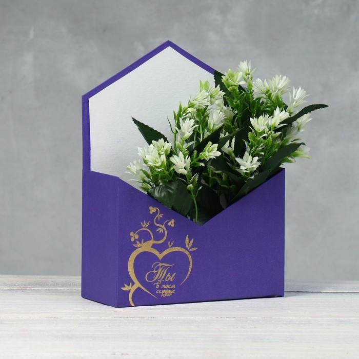Конверт с золотым тиснением "Ты в моем сердце" фиолетовый 18 х 24 х 7 см