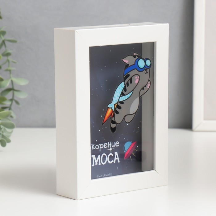 Копилка интерьерная пластик "Котик с рюкзаком ракетой - На покорение космоса" 17х12х3,8 см