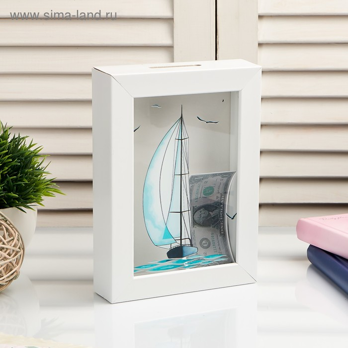 Копилка интерьерная пластик "Парусник" 17х12х3,8 см