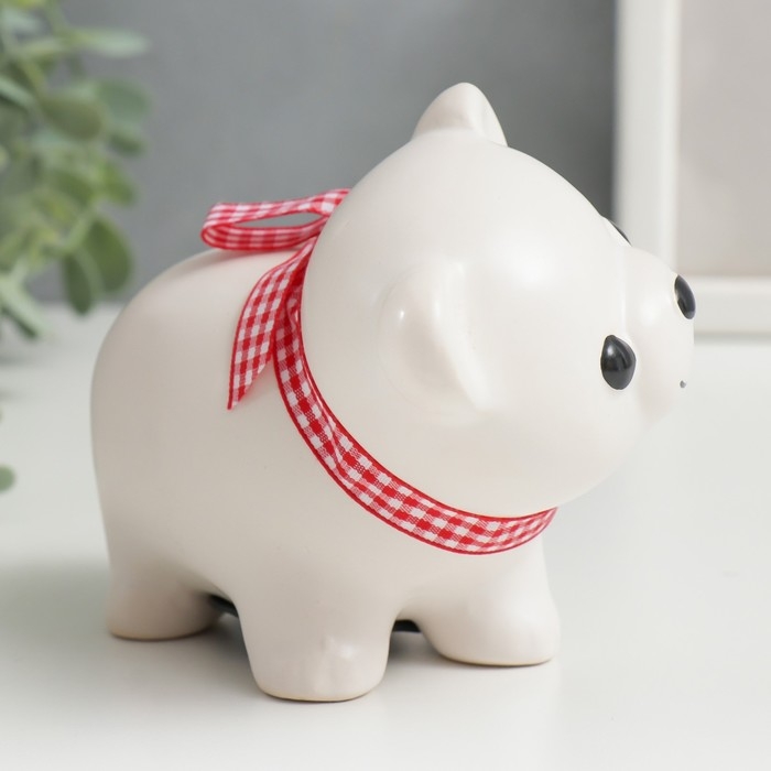 Копилка керамика "Белый мишка с бантом" 10х11х6,3 см