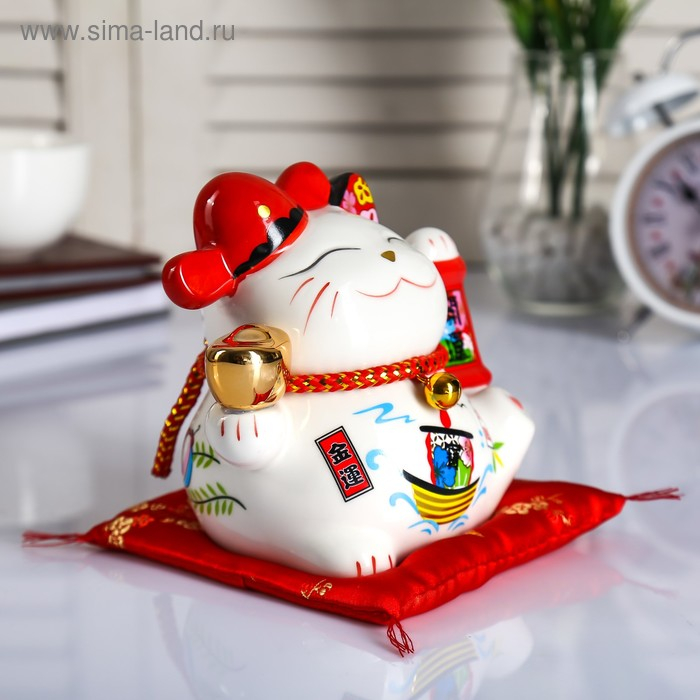 Копилка керамика "Кот манэки-нэко со слитком и колокольчиком" 12х15х9 см