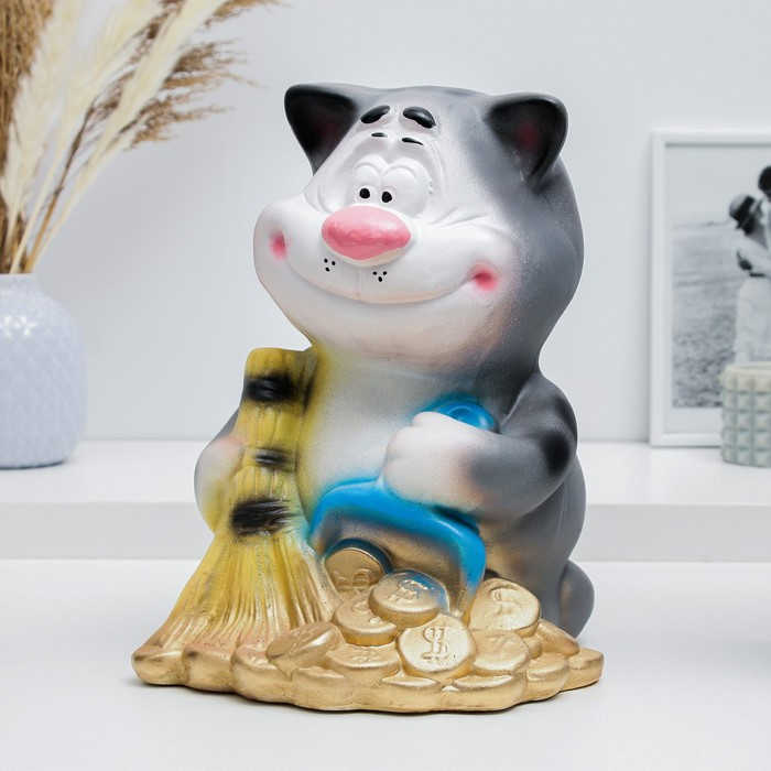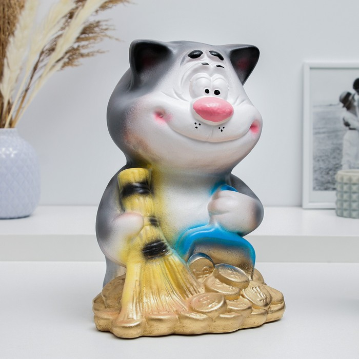 Копилка "Кот с веником" 14х15х23см