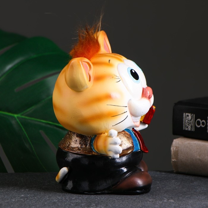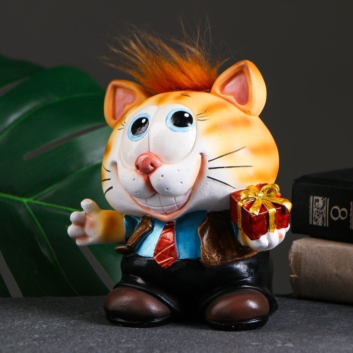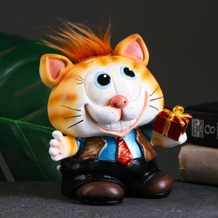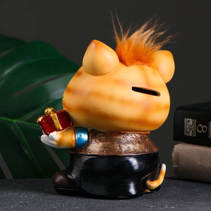 Копилка "Котик с подарком" рыжий чуб 14х12х16см