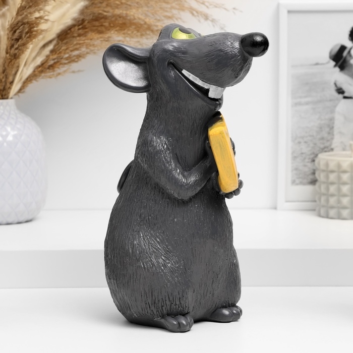 Копилка "Крыса с сыром" темно-серая, 24х16х14см