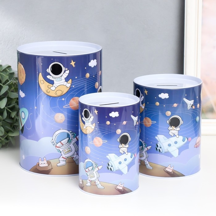 Копилка металл банка "Космические приключения" набор 3 шт 10х10х15;12х12х16;15х15х21,4 см