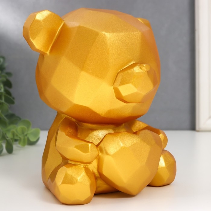 Копилка пластик "Медвежонок с сердцем" золотой 14,5х14х17 см