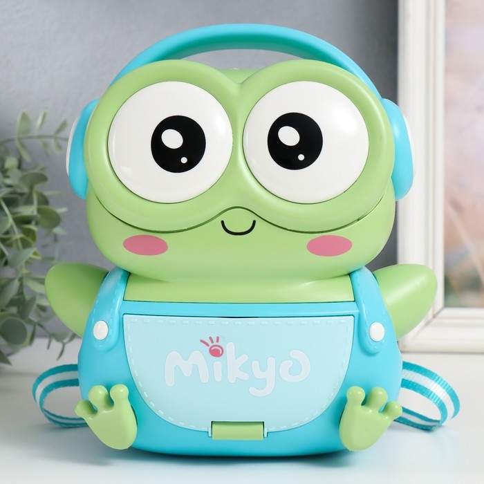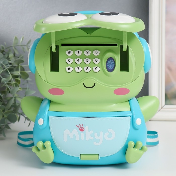 Копилка пластик "Рюкзак Лягуха" кодовый замок, звук АА 25х14х18,5 см