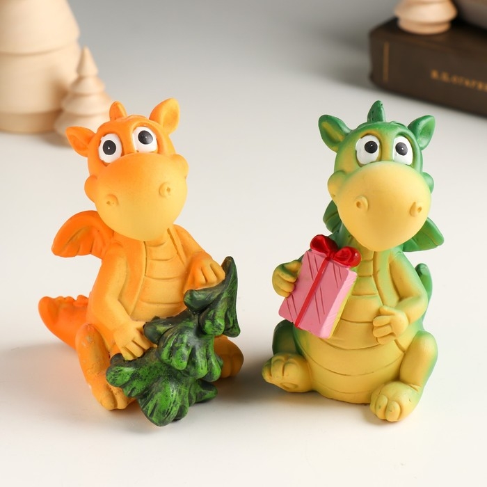Копилка полистоун "Дракон Добряк с подарком" МИКС 8х6,5х10 см