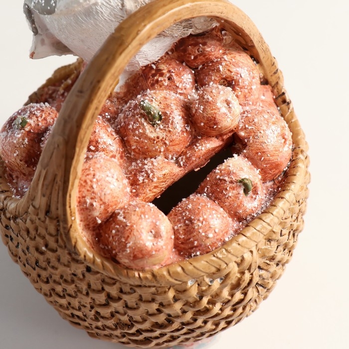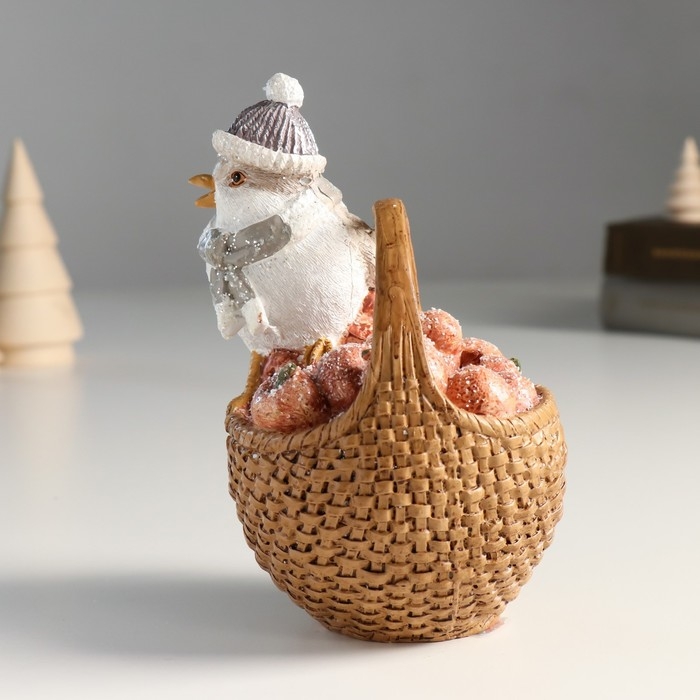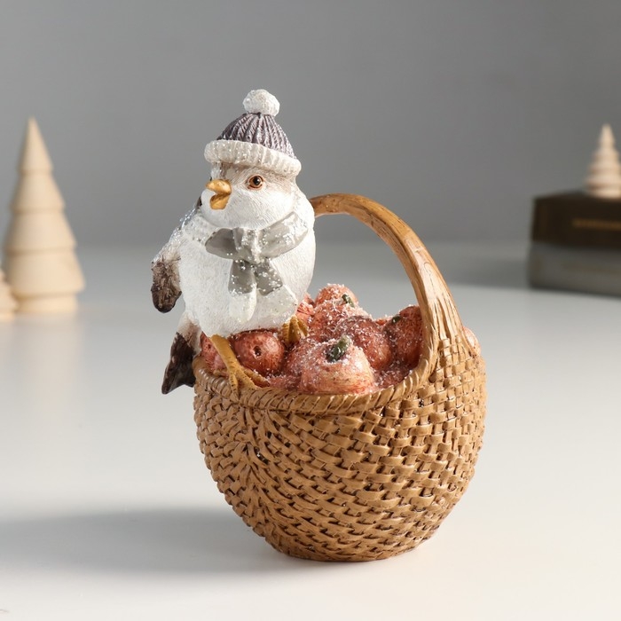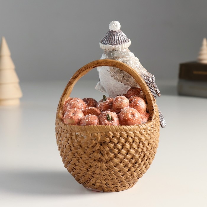 Копилка полистоун "Воробышек в шарфе и шапке, на корзине с яблоками" 11х10,5х15,5 см