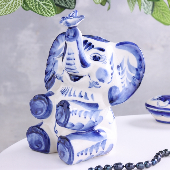 Копилка "Слоник", 14 х 17 см, гжель