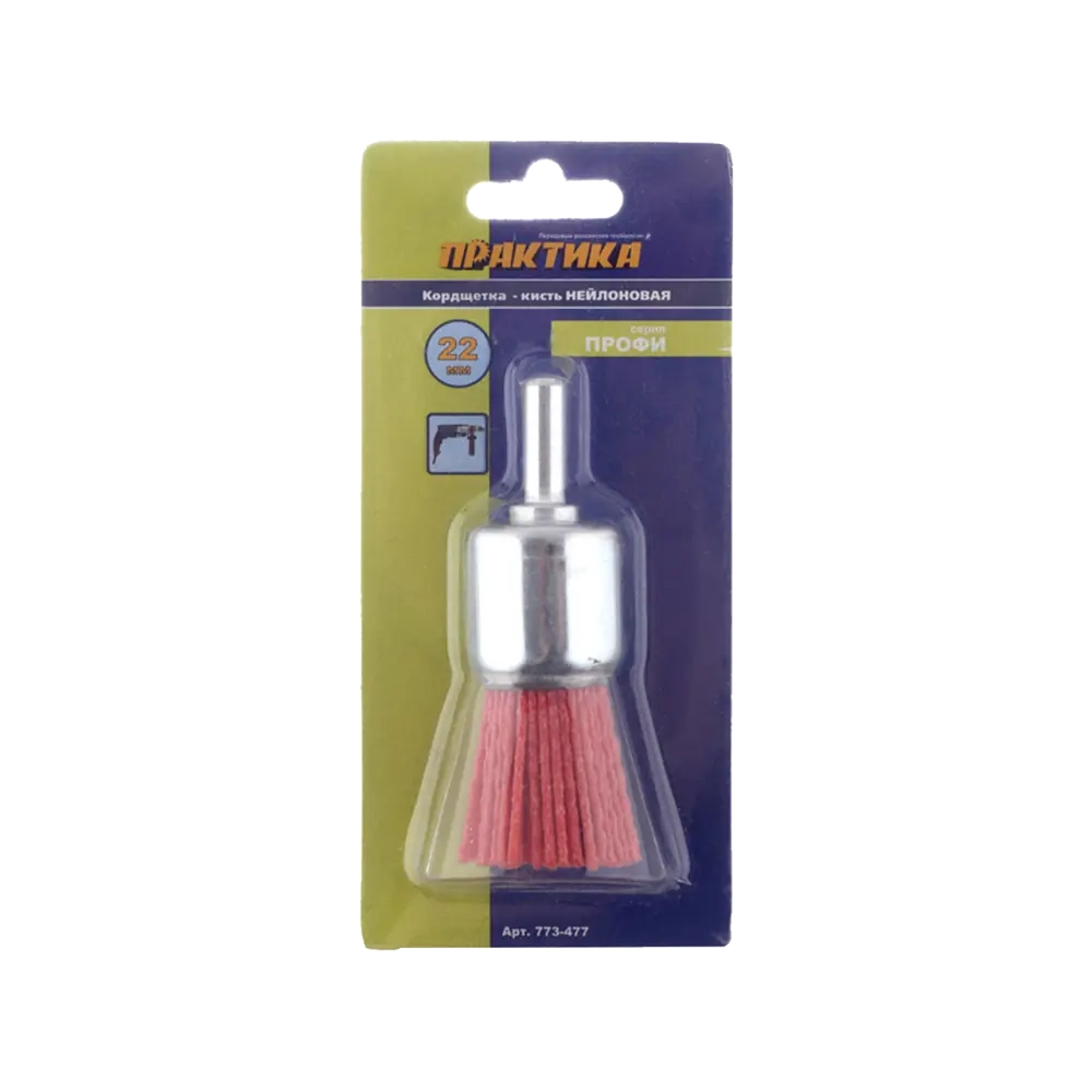 Кордщетка для дрели абразивная 22 мм кистеобразная хвост 6 мм, Практика 773-477