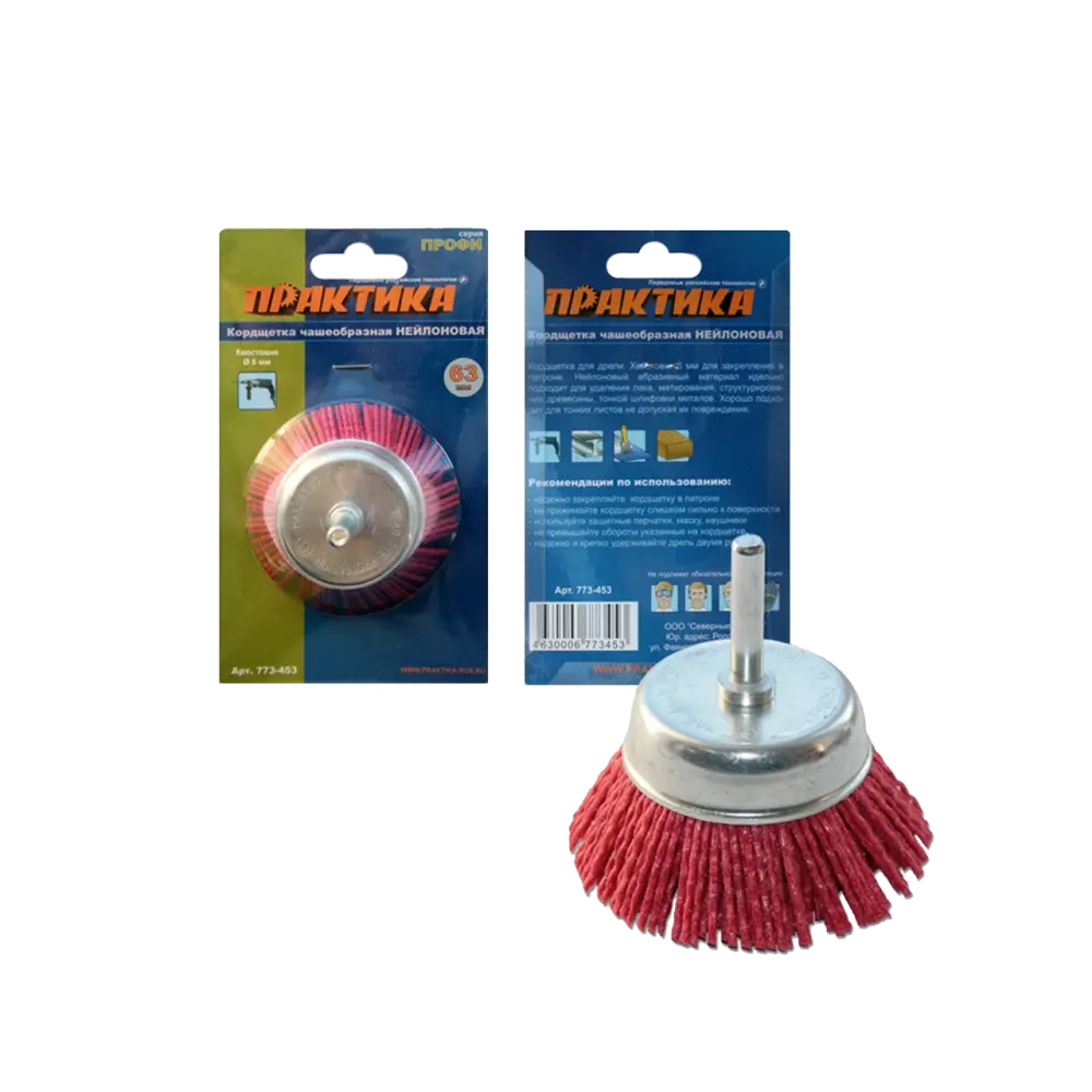 Кордщетка для дрели чашеобразная нейлоновая 63 мм хвост 6 мм, Практика 773-453