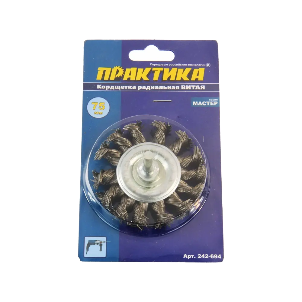 Кордщетка для дрели чашеобразная радиальная витая 75 мм хвост 6 мм, Практика 242-694