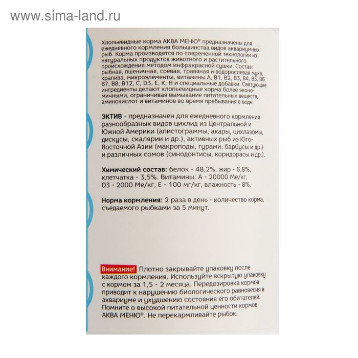 Корм для рыб АКВА МЕНЮ "Эктив", 600 мл