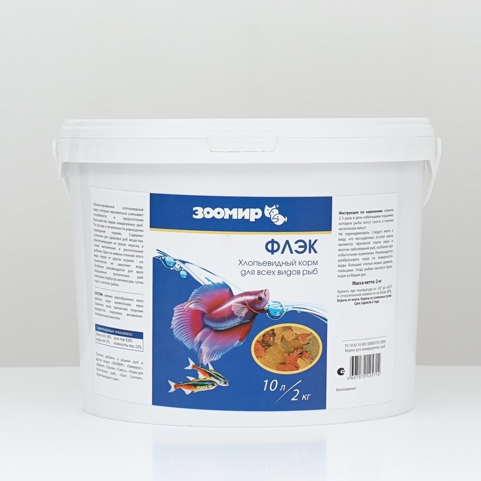 Корм для рыб "Флэк" хлопьевидный, для всех видов, 10 л, 2 кг