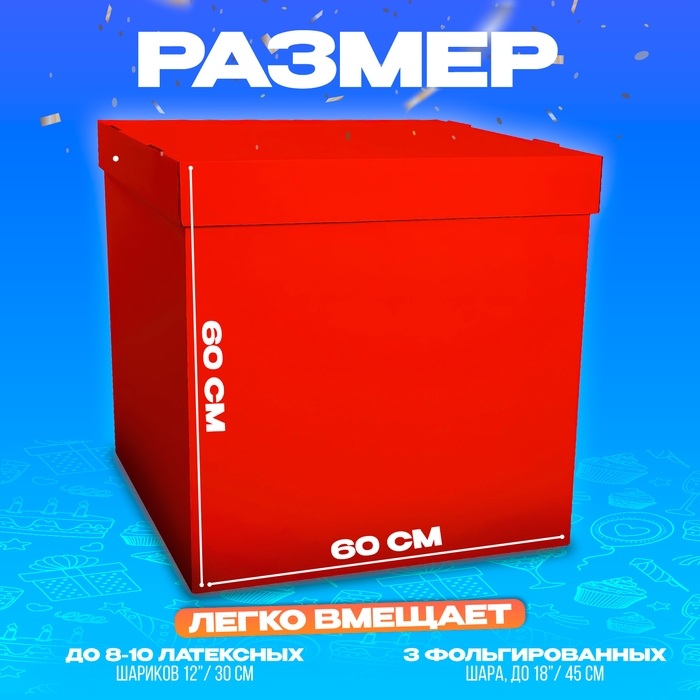 Коробка 60х60х60 см, красная, с крышкой, 1шт.