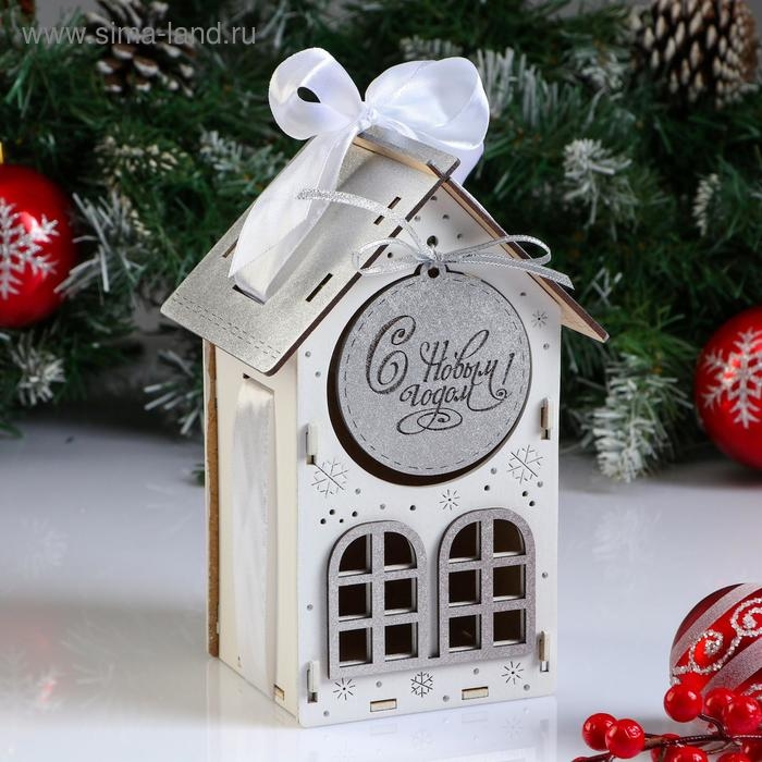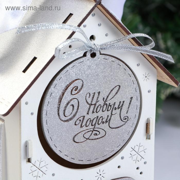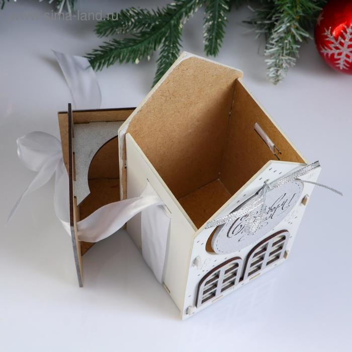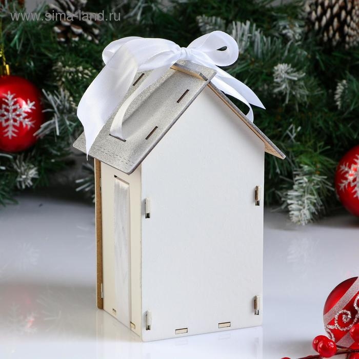 Коробка деревянная, 13.5×11.5×21 см "Новогодняя. Домик", подарочная упаковка, белый