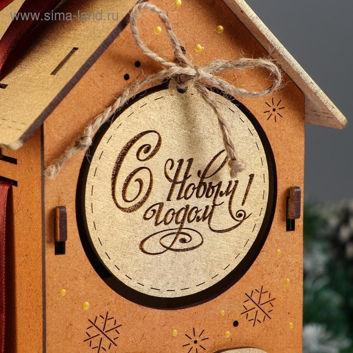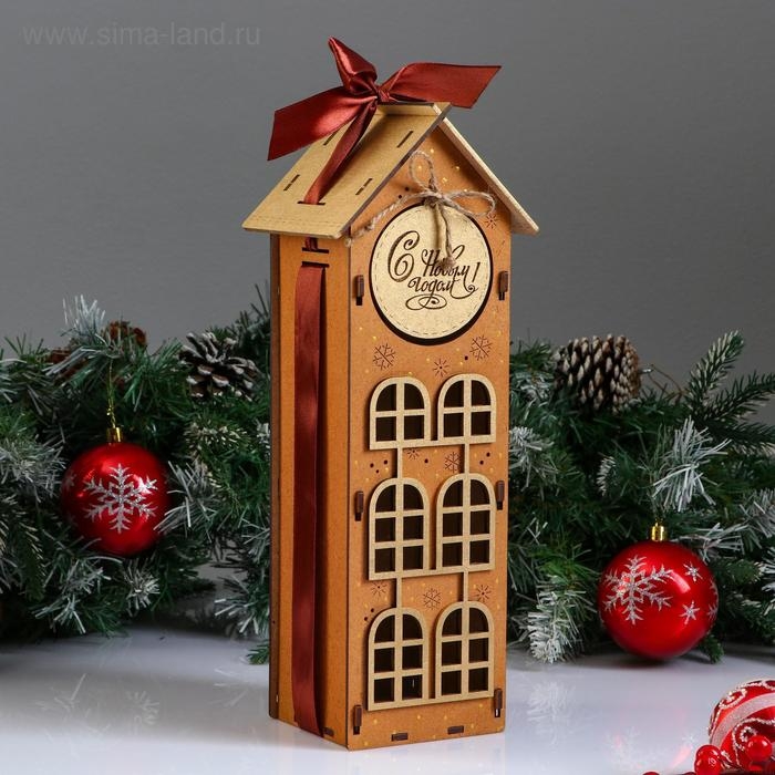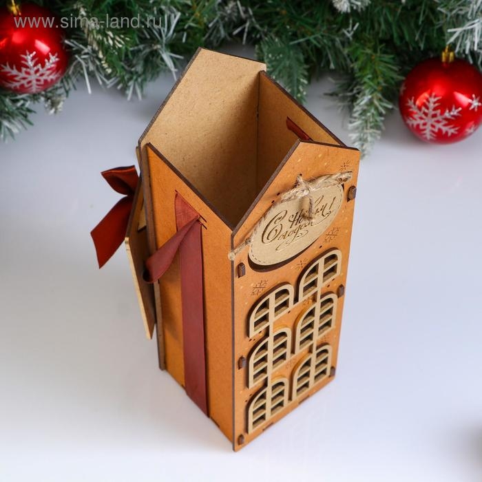 Коробка деревянная, 13.5×11.5×36.5 см "Новогодняя. Домик", подарочная упаковка, мокко