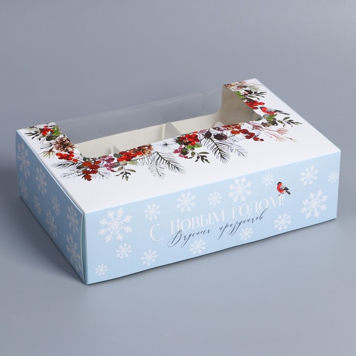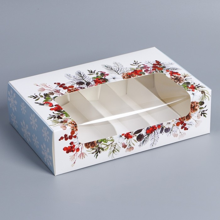 Коробка для эклеров с вкладышами «Новогодняя акварель», 25,2 х 15 х 7 см, Новый год