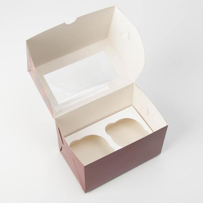 Коробка на 6 капкейков с окном, крафт, 25 х 17 х 10 см