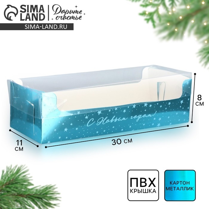 Коробка для кондитерских изделий с пластиковой крышкой «С Новым годом», 30 х 8 х 11 см, Новый год