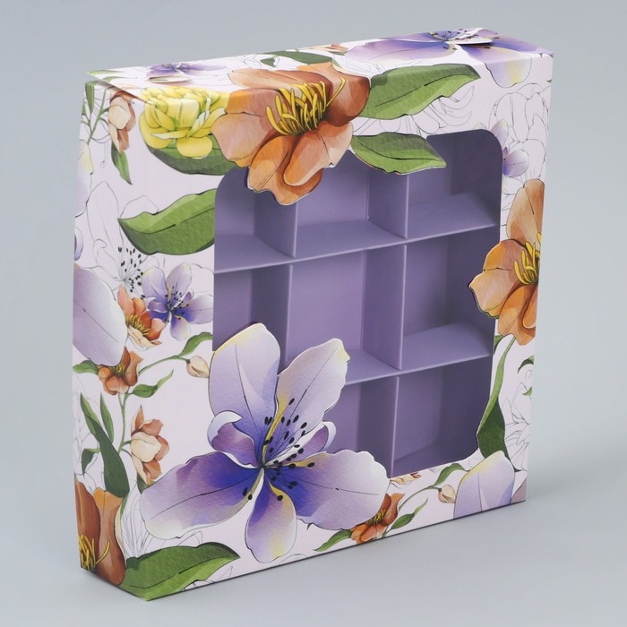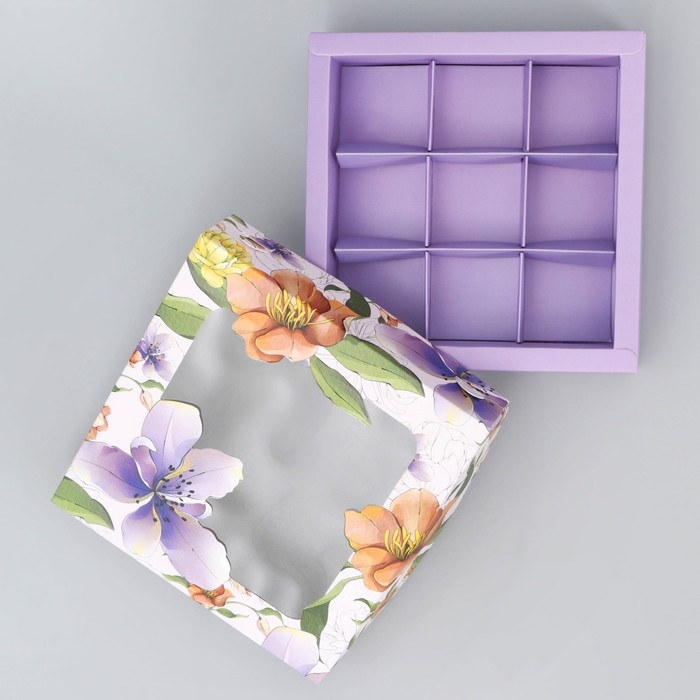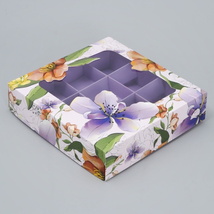 Коробка для конфет, кондитерская упаковка, 9 ячеек, «Для тебя», 14.7 х 14.7 х 3.5 см
