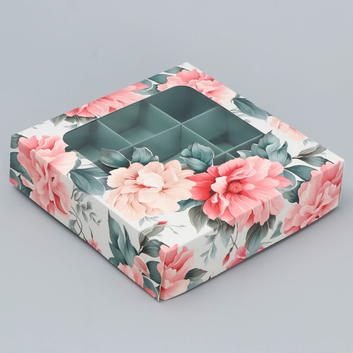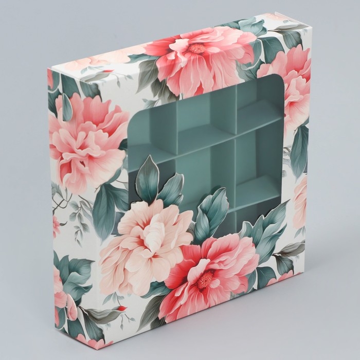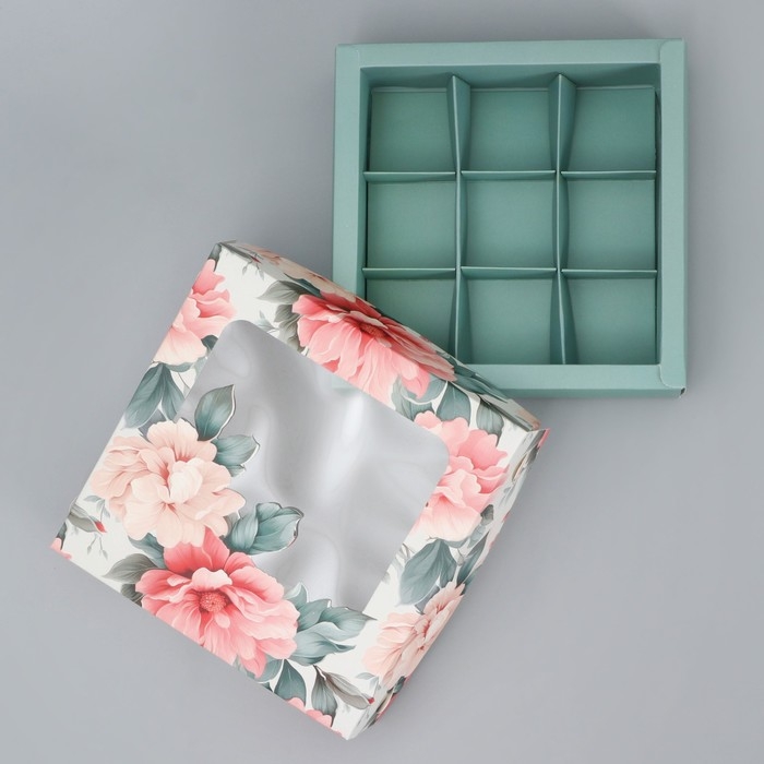 Коробка для конфет, кондитерская упаковка, 9 ячеек, «Нежность внутри», 14.7 х 14.7 х 3.5 см