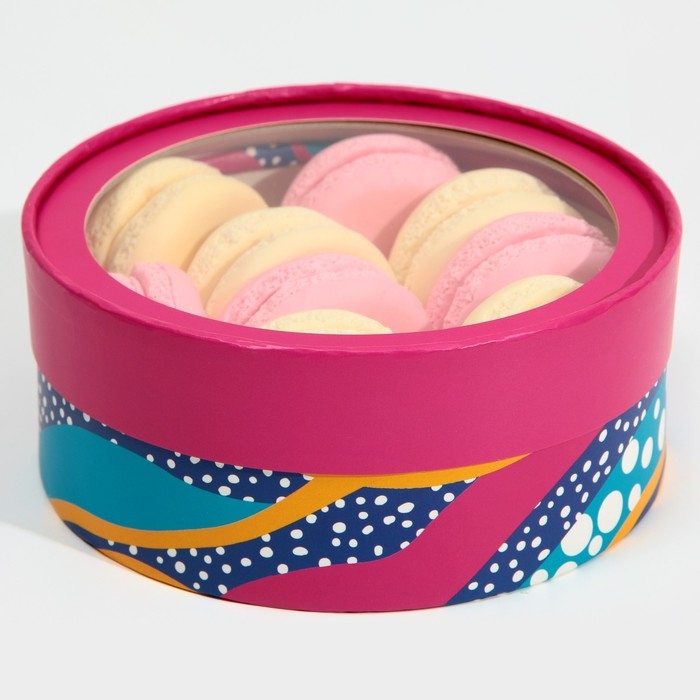 Коробка для макарун, кондитерская упаковка тубус с окном, «Яркая геометрия» 16 х 16 х 5 см