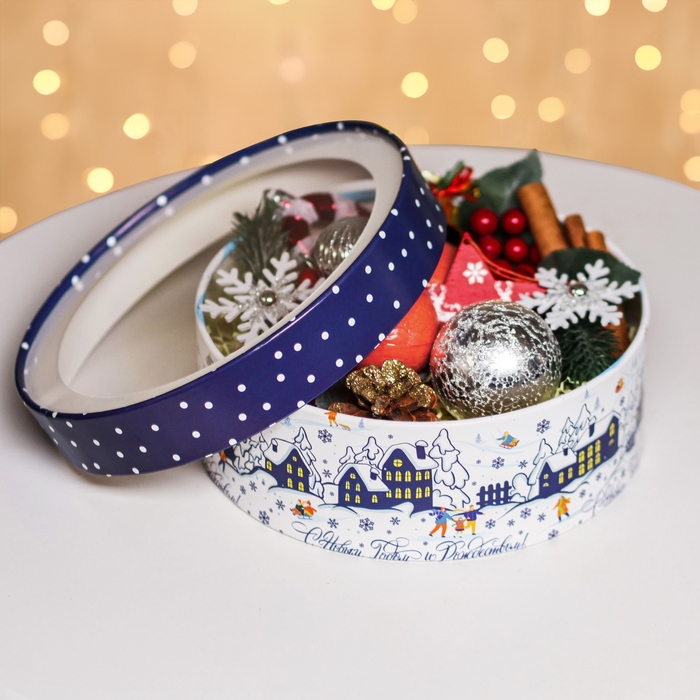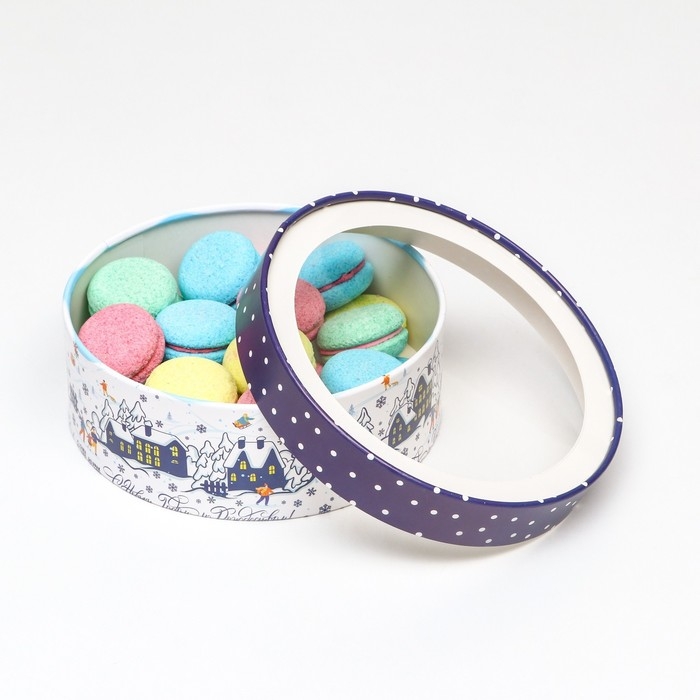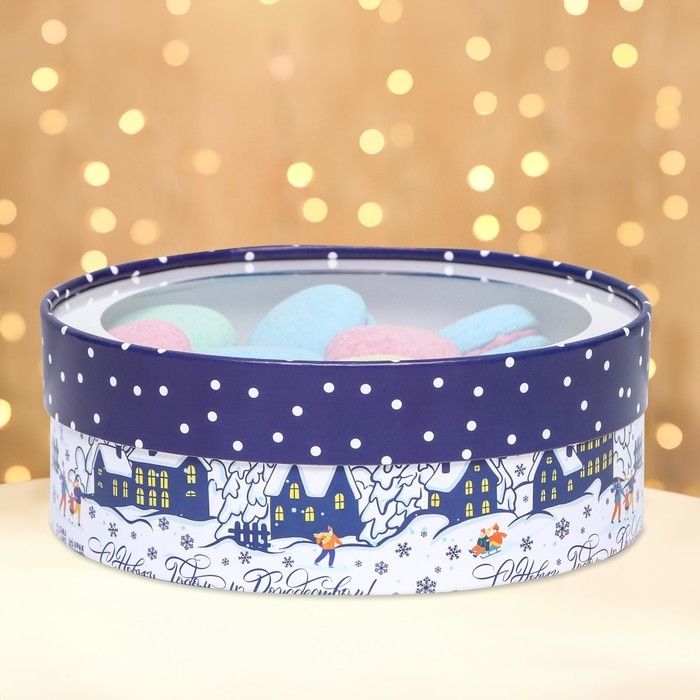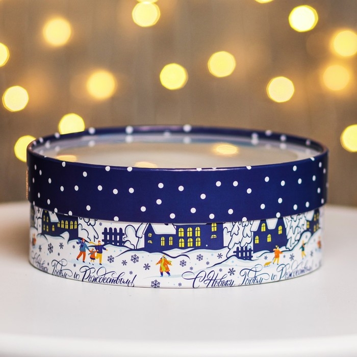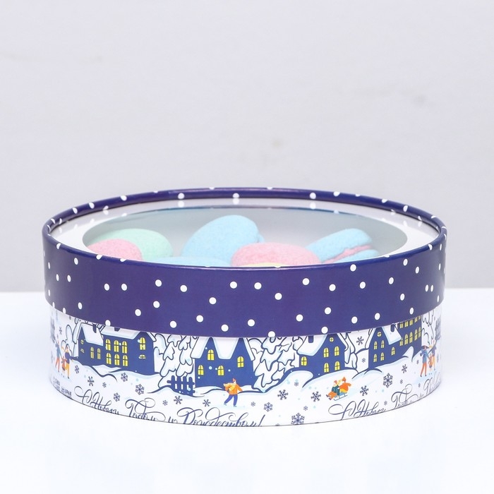 Коробка для макарун тубус с окном "С Новым годом" 21 х 21 х 7 см