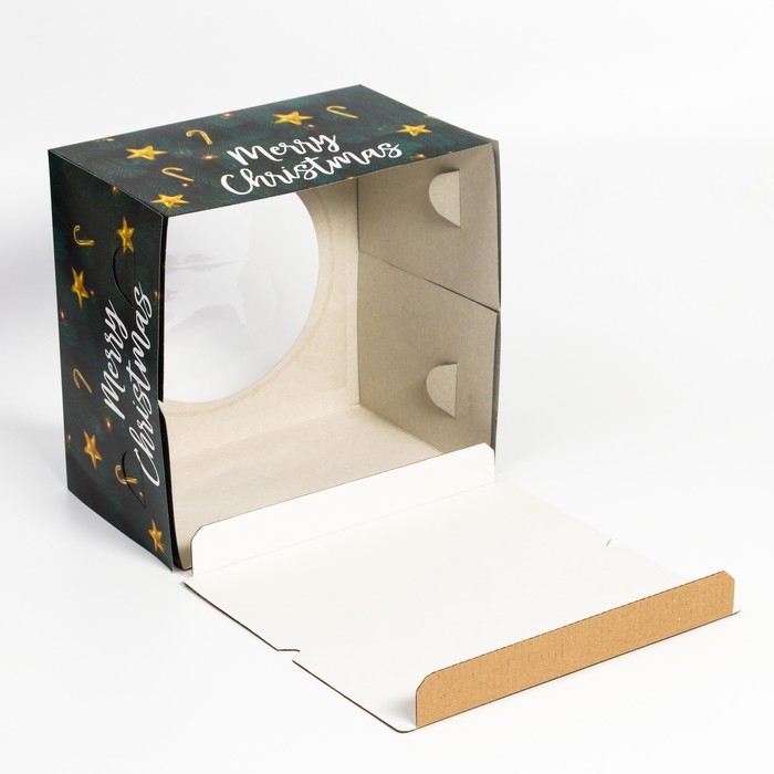 Коробка для торта новогодняя с окном «Merry Christmas», 30 х 30 х 19 см. Новый год
