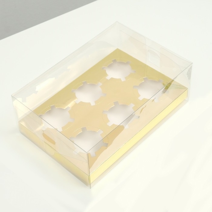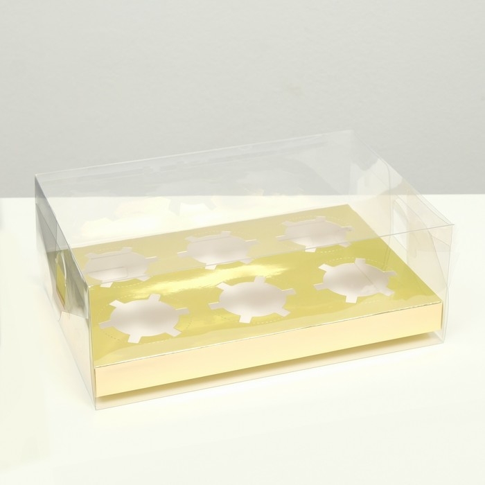 Коробка на 6 капкейков, золото, 26,8 × 18,2 × 10 см
