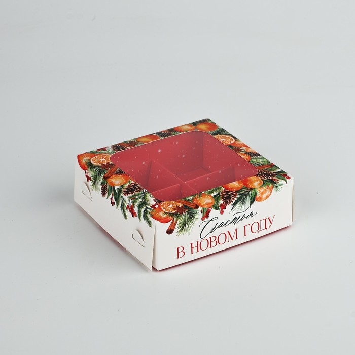 Коробка под 4 конфеты «Зимняя ботаника», 10.5 х 10.5 х 3.5 см, Новый год