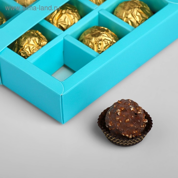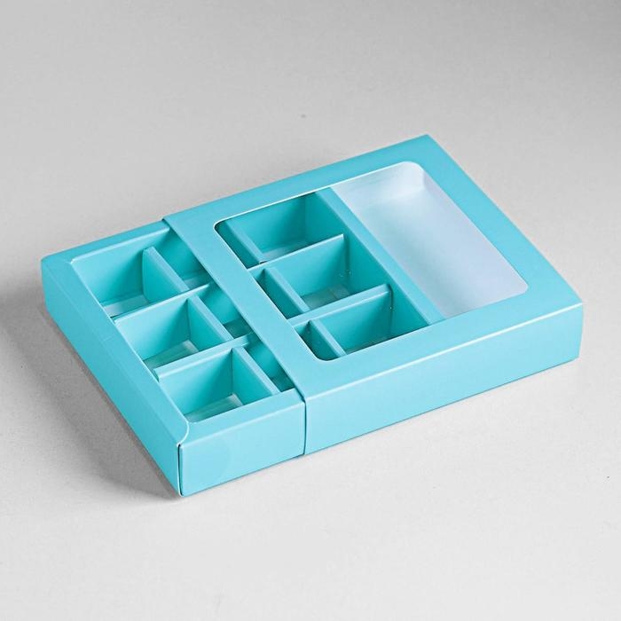 Коробка под 9 конфет с обечайкой, голубой, 13,7 х 13,7 х 3,5 см