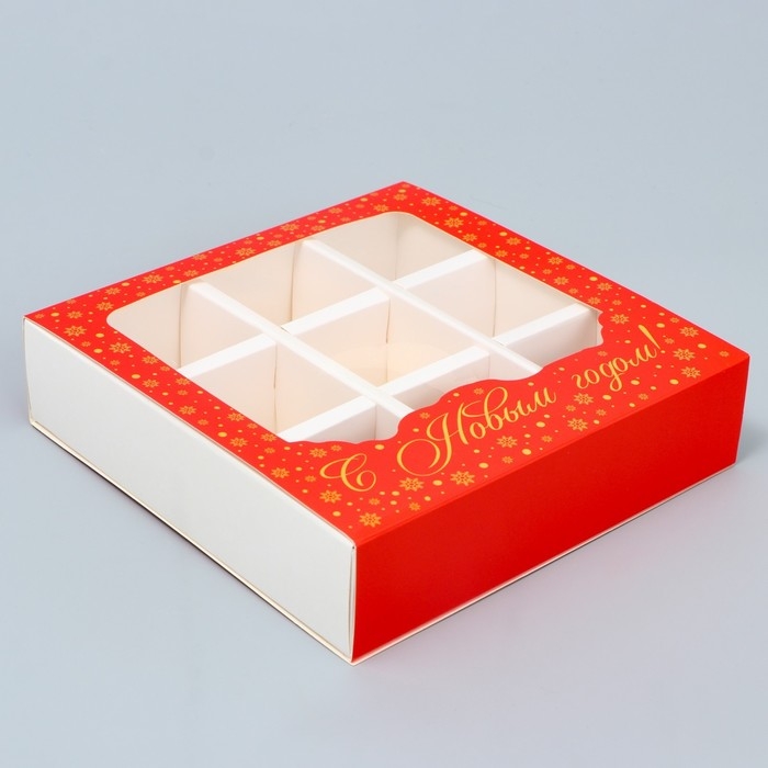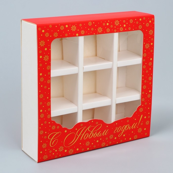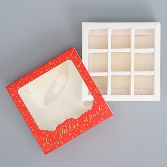 Коробка под 9 конфет с ячейками «Красивый новый год» 14.5 х 14.5 х 3.5 см, Новый год