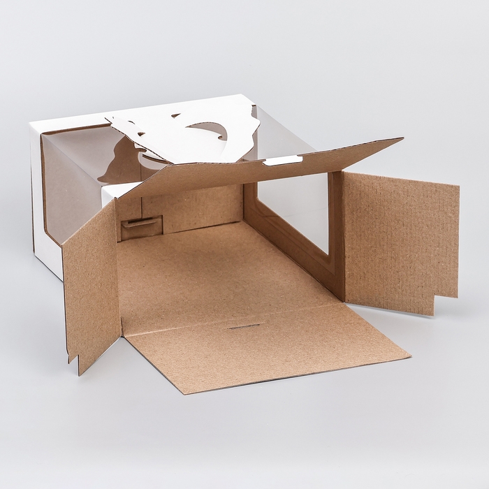 Коробка под торт, белая, с окном, 18 х 18 х 22 см