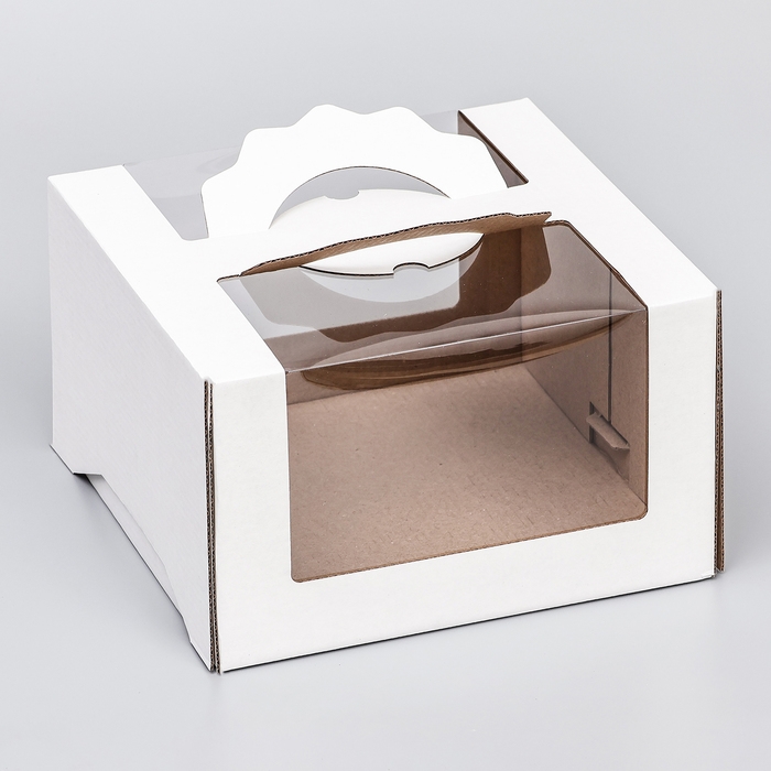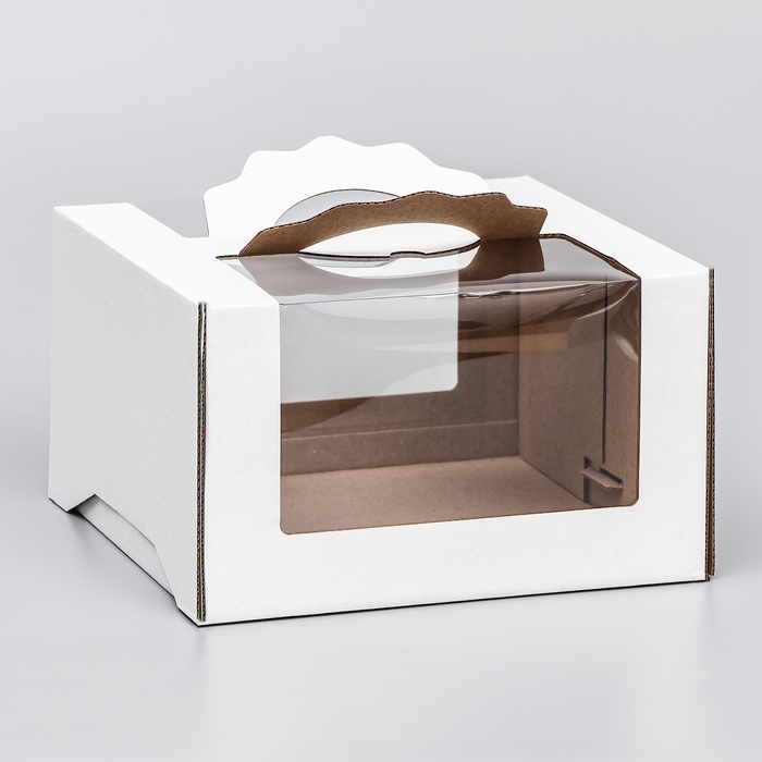 Коробка под торт 2 окна, с ручками, белая, 25 х 25 х15 см