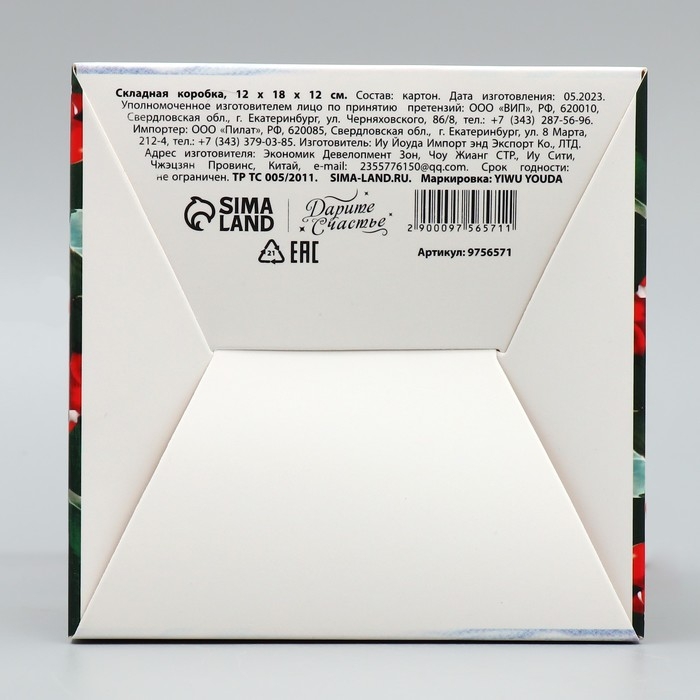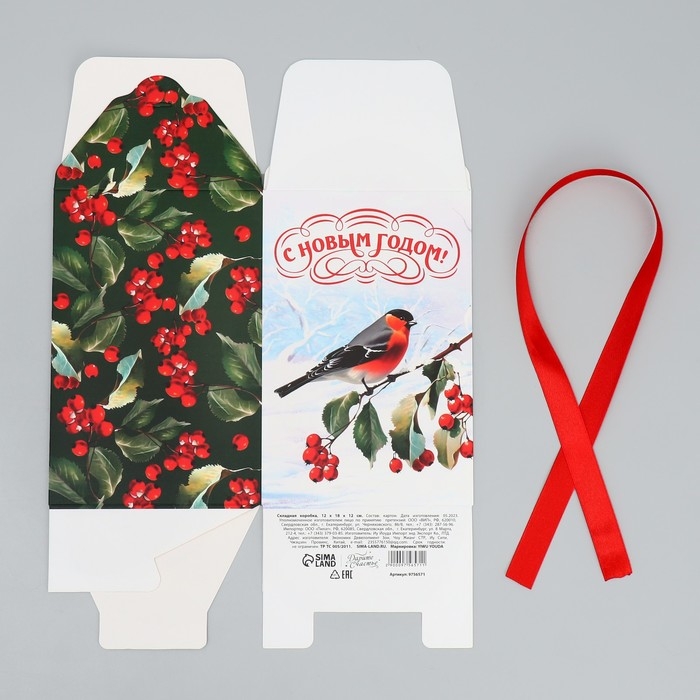 Коробка подарочная новогодняя складная «С Новым годом!», снегирь, 12 х 18 х 12 см, Новый год