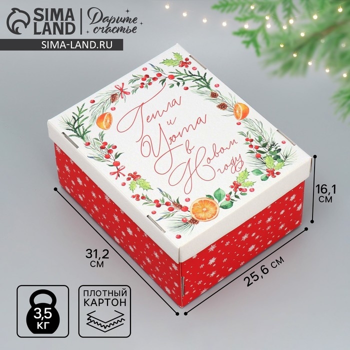 Коробка подарочная новогодняя складная «Тепла и уюта», 31.2 х 25.6 х 16.1 см, Новый год