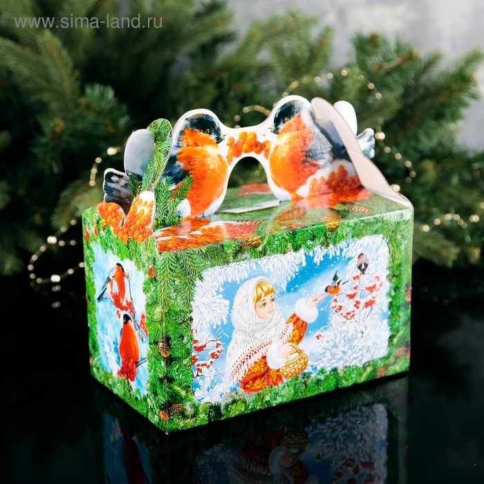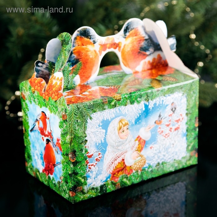 Коробка подарочная"Кормушка снегири", с окном, 20.5 х 12.3 х 22 см.