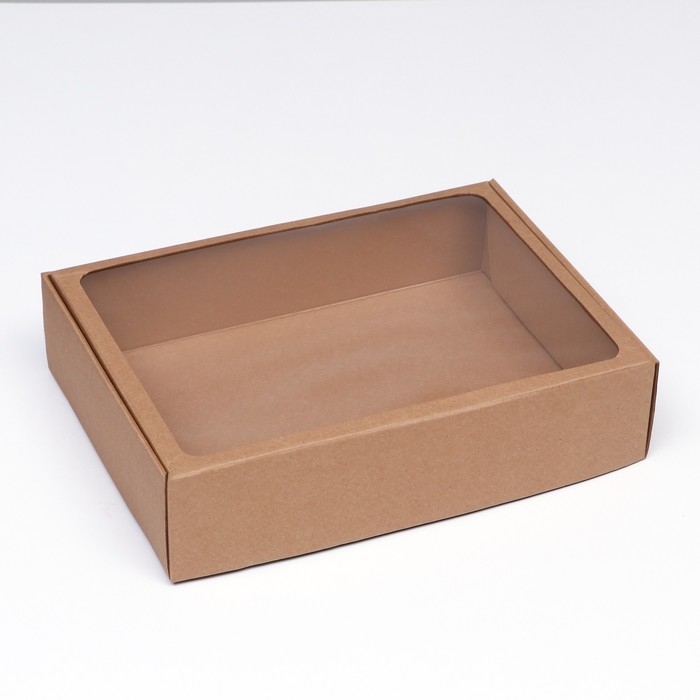 Коробка самосборная с окном, бурая, 38 х 28 х 9 см